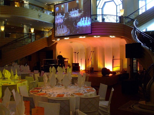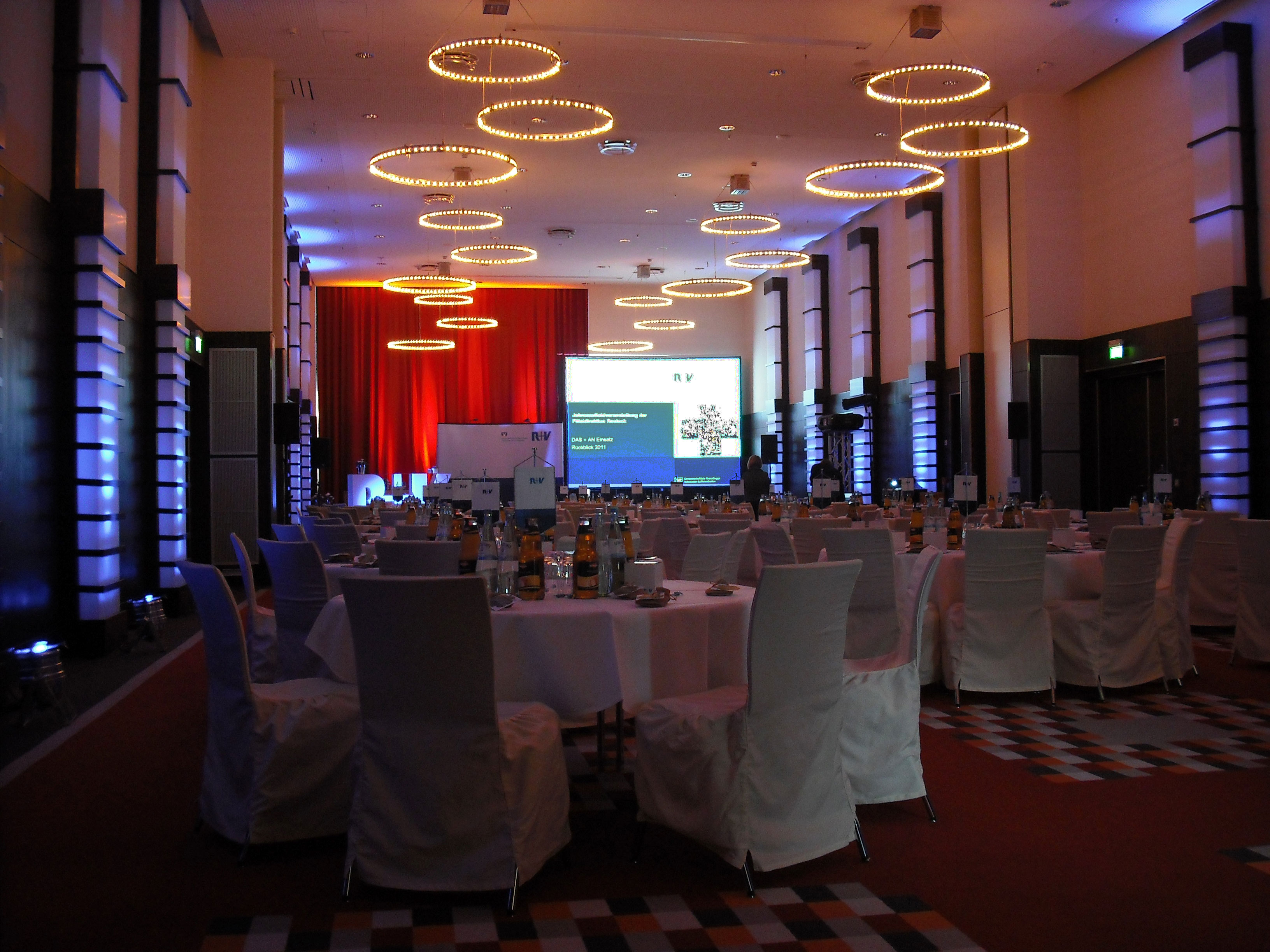 Betriebsversammlung der R+V Versicherung Rostock im Radisson SAS Hotel | Videoprojektion, Ton & Dekorationsbeleuchtung von MLR
