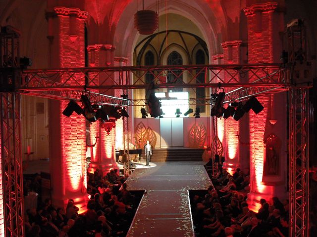 10.09.2010: Produktion 11. Dance-Fashion Show mit Stargast Tim Fischer, Nikolaikirche Rostock: Multizonen-Beschallung, Bühnen- und Lichttechnik von Musikladen Rostock