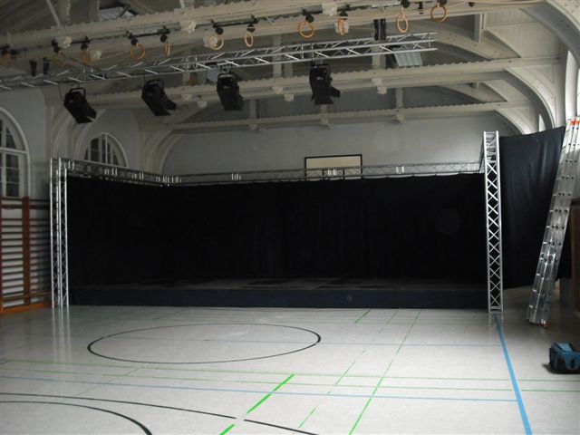 Theater - Projekttage in der Julius-Leber-Schule in Lübeck, 50 qm- Bütecs mit Theater-Beleuchtung von Musikladen Rostock