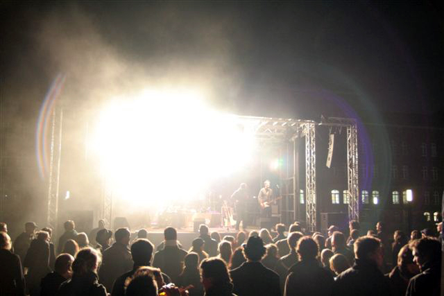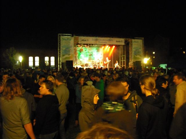 Der immer wieder rappelvolle Campus Rostock: Semestereinstand mit Live-Musik am 04.10.2011, frische Temperaturen, aber eine urige Party!: Konzertbühne und Eventtechnik von Musikladen-Rostock