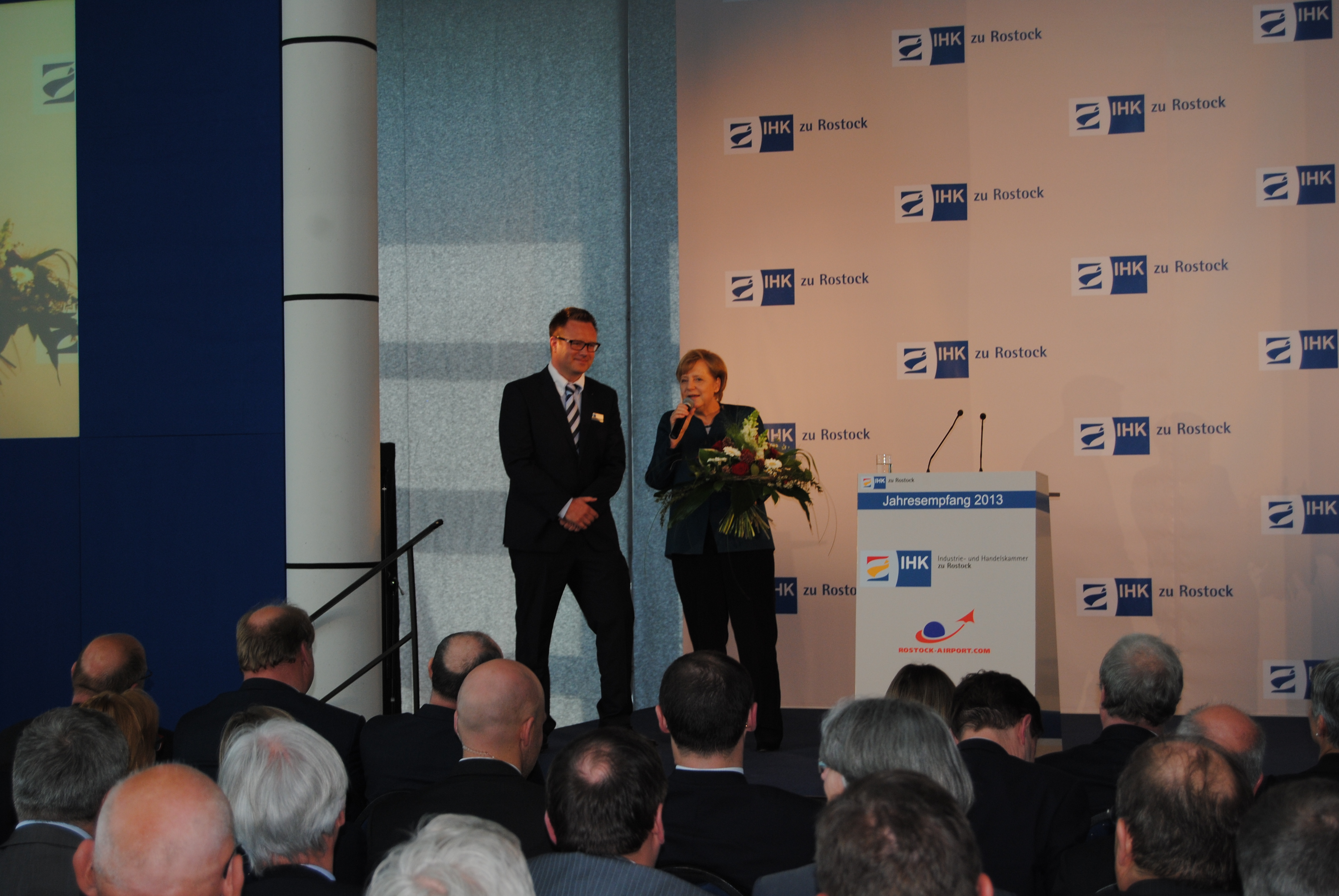 IHK Jahresampfang im Flughafen Laage - Rostock - Projektion Bühnenbau, großflächige Verdunklung Tontechnik