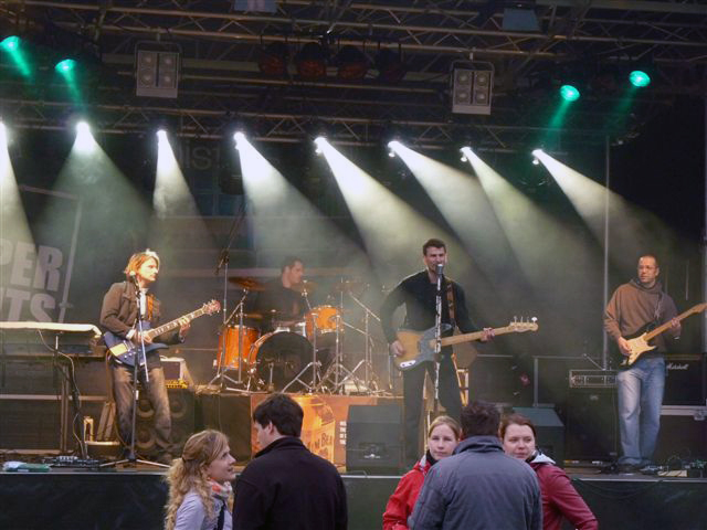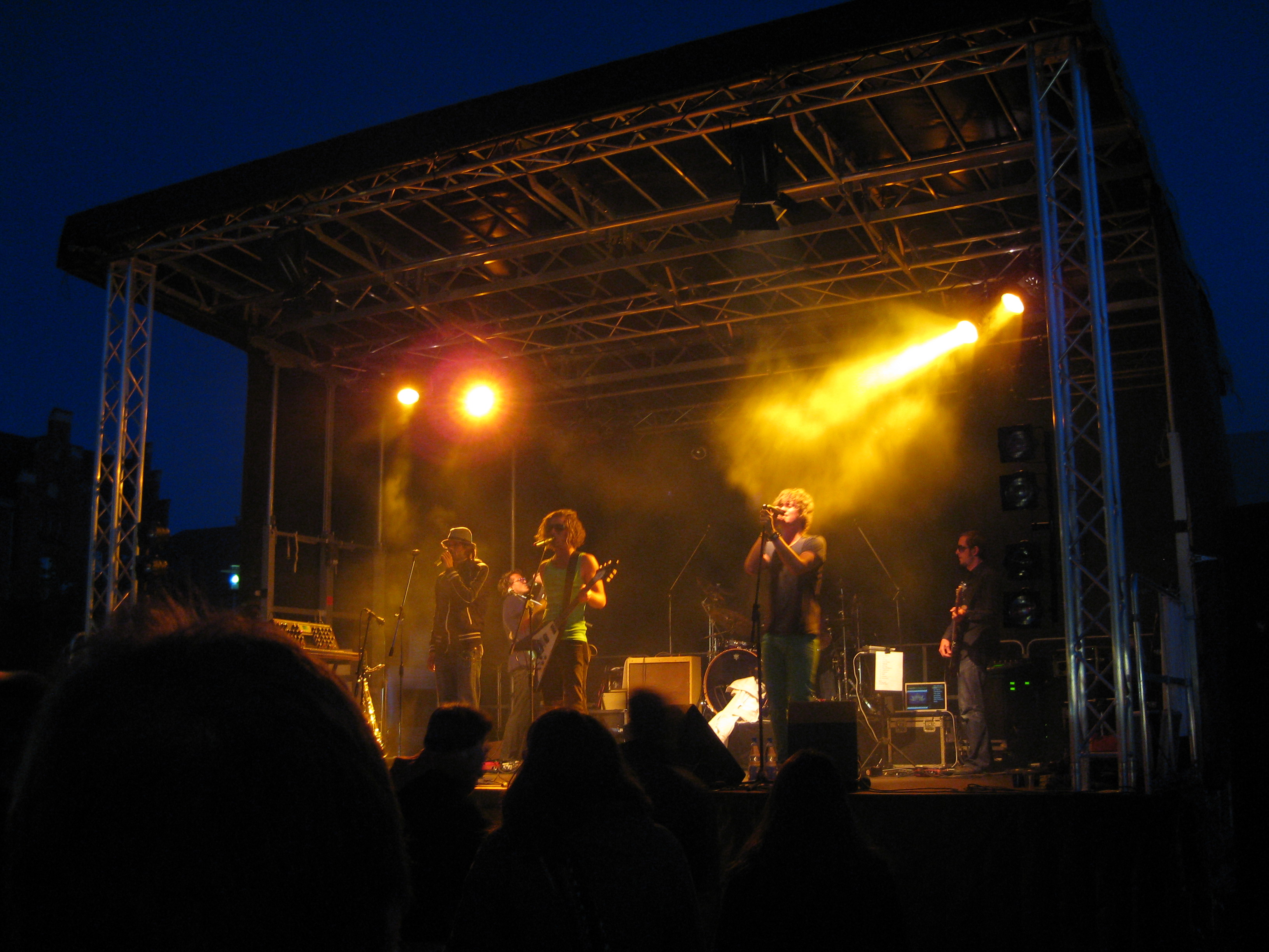 11.05.09 Campus Erwachen in Rostock mit Sorgente ; Bühne und Technik komplett von Musikladen Rostock, mit wenig Strom eine super Show von der Band. (Respect!)
